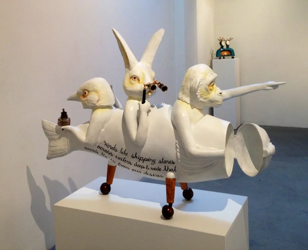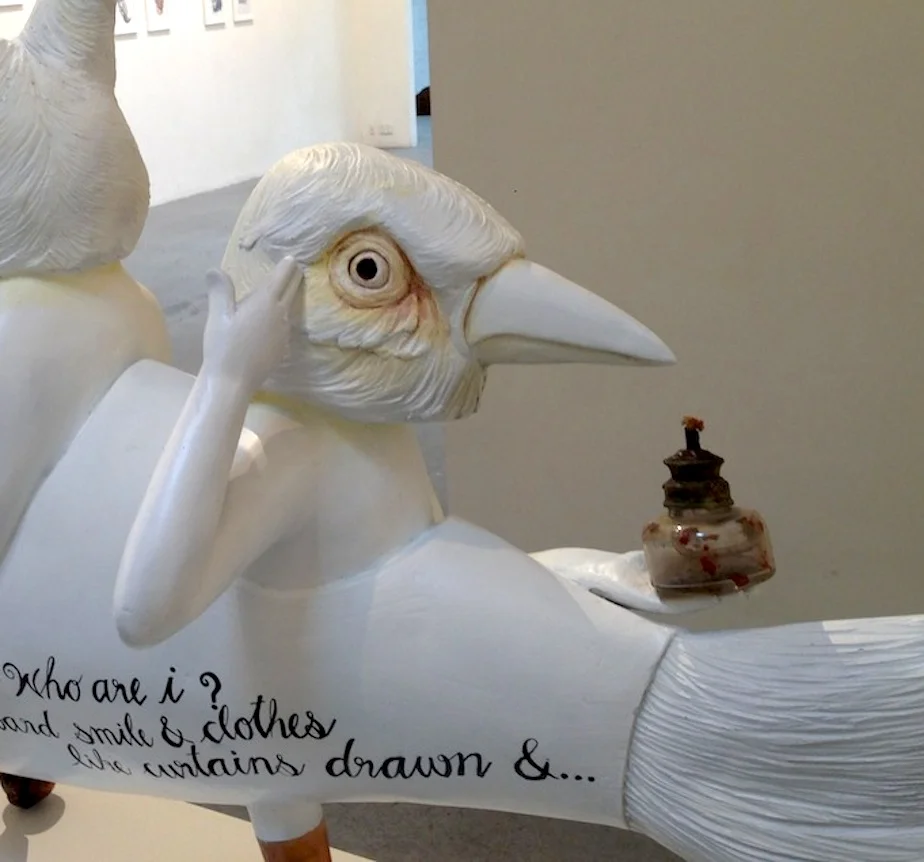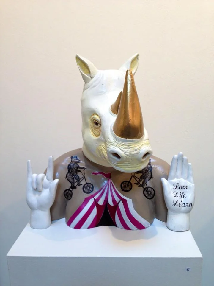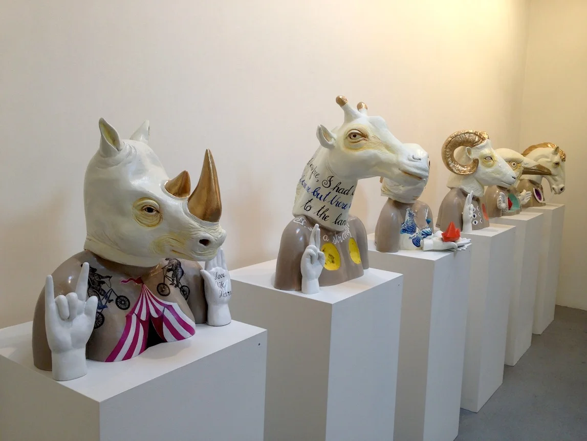 There are, to various degrees, always primal motivations within this human facade. False pretense is common and often subconscious and this is represented by the various masks in this series.